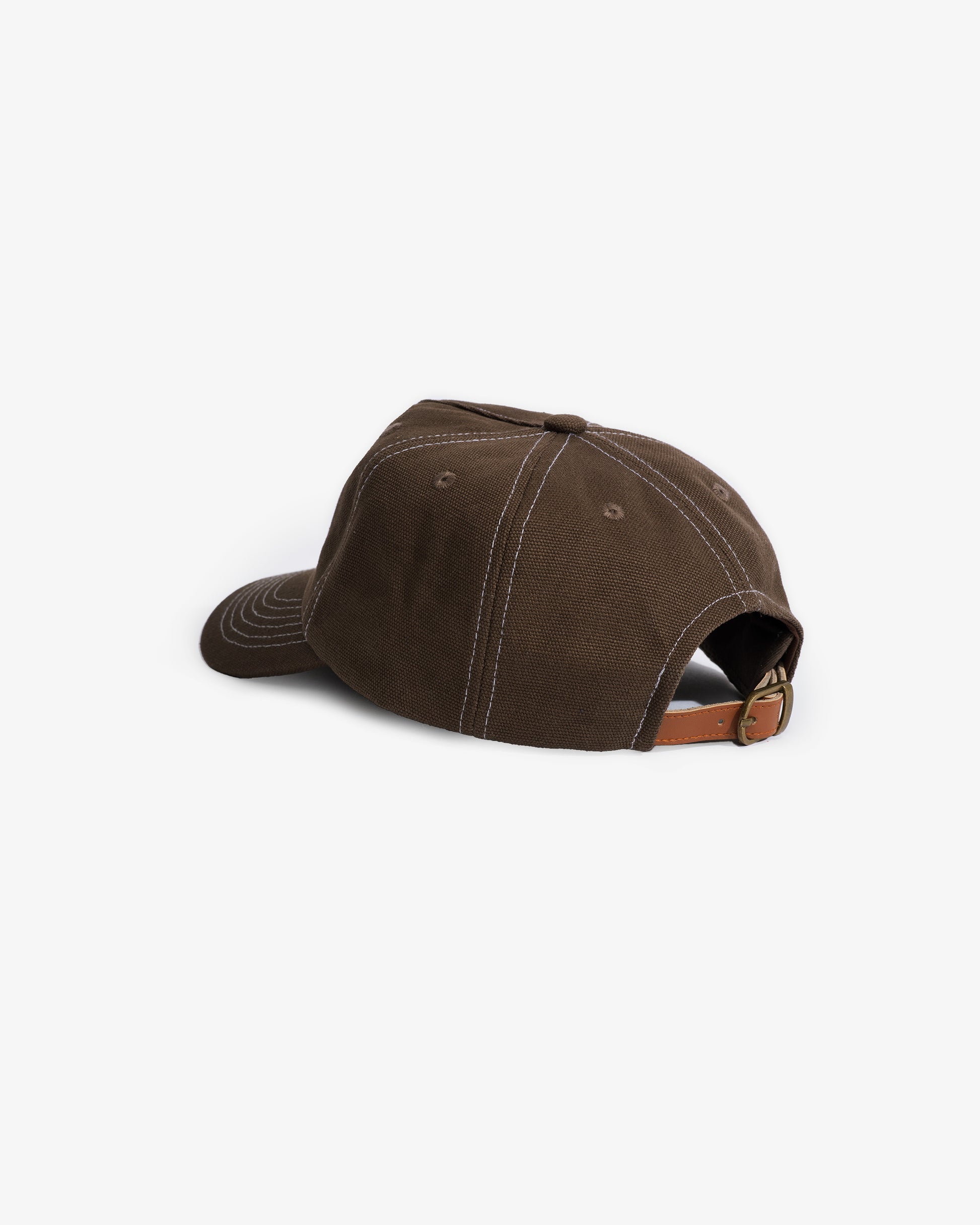 Our cap is made from 100% cotton canvas and features an embroidered wool felt patch on the front. Designed with an unstructured 5-panel construction and genuine leather strap at the open back for easy adjustment. Finished with contrast stitching.