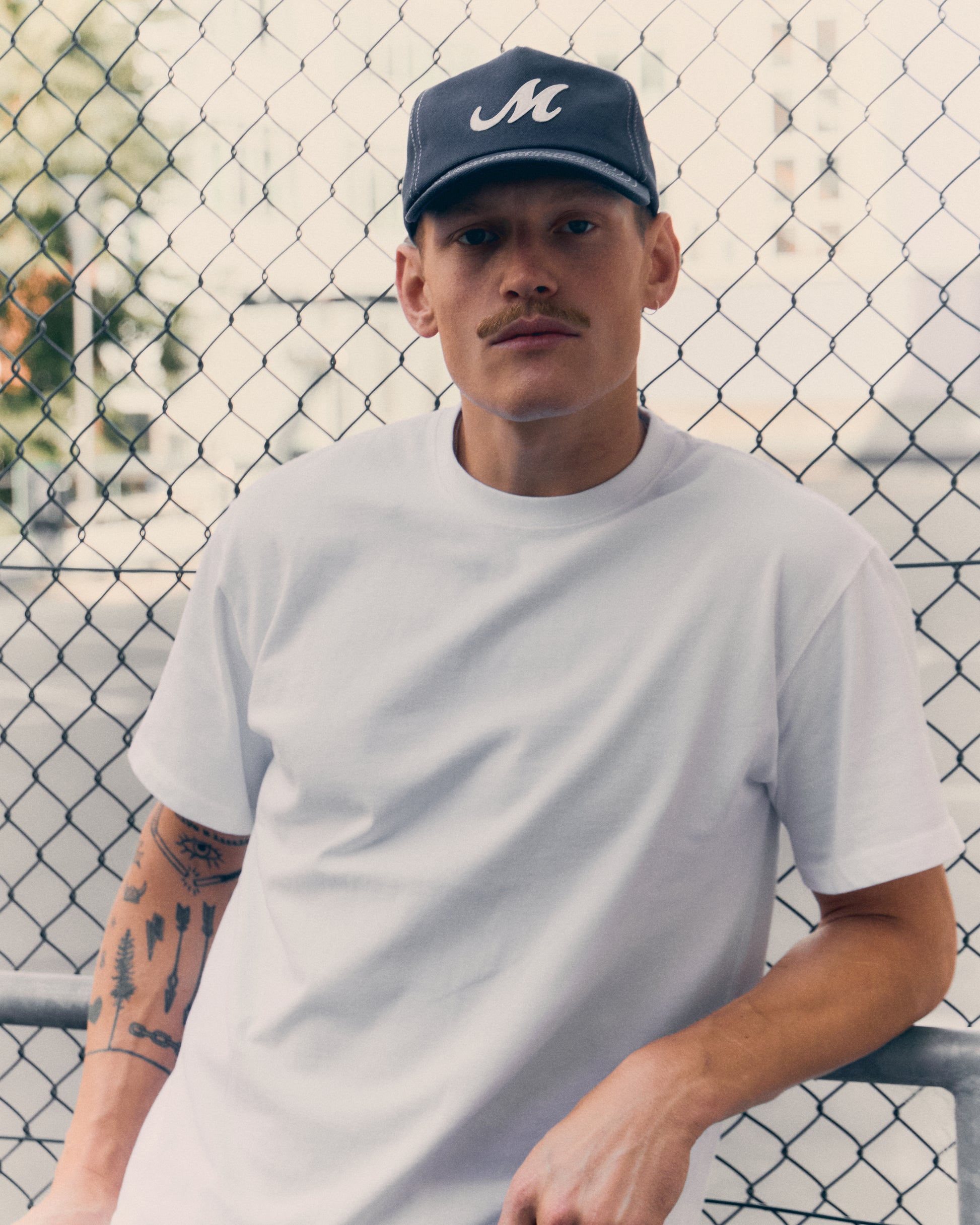 Our t-shirt is made from a heavyweight 270 gsm 100% cotton fabric. It has a boxy fit and is finished with a white embroidered Maecor logo on the back.